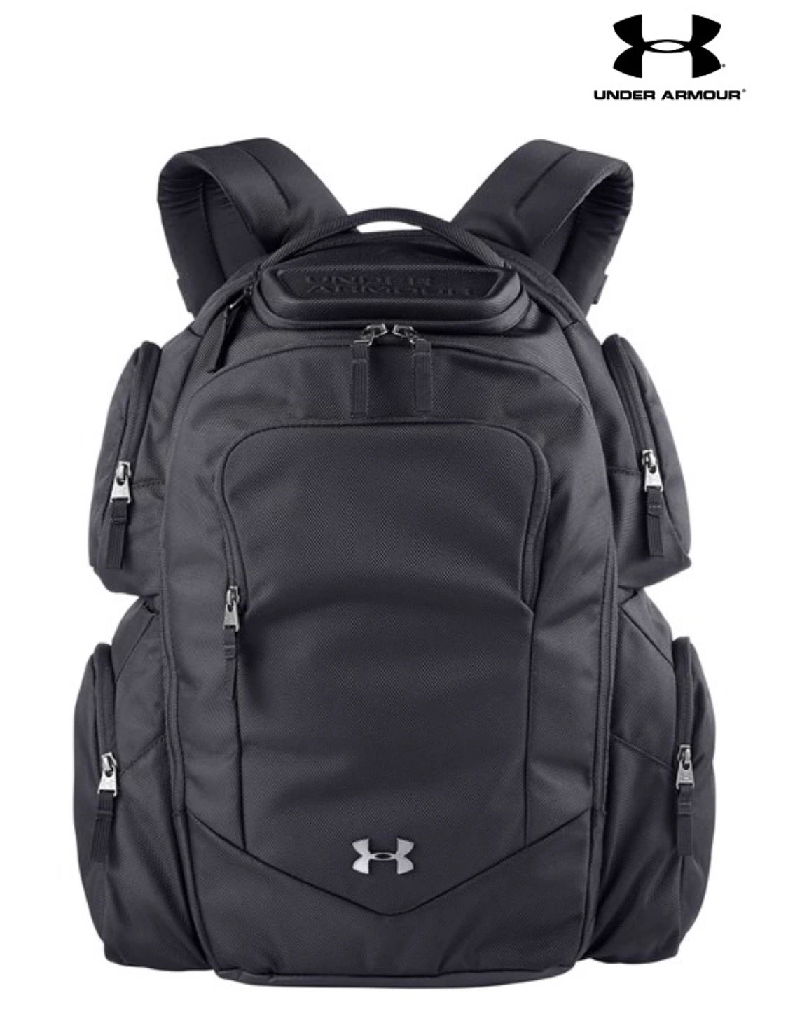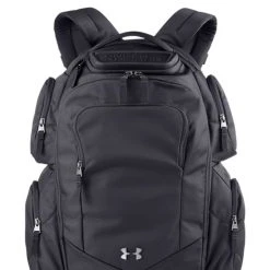 100% Polyester; UA Storm technology delivers an element-battling, highly water-resistant finish; compression molded shoulder straps & back panel feature Charged Cushioning® for total comfort, firm enough to handle heavy weight; easily accessible, TSA friendly laptop sleeve unzips to lay flat so you don‘t need to remove it from your bag—holds up to 15” MacBook Pro® or similarly sized laptop; large main compartment with tons of open storage space; four, fully zippered, side pockets; front panel features a molded eyeglass/valuables pocket & a second pocket with internal organization; compression molded bottom panel for added structure & durability; front sternum strap & padded top grab handle; metal logo details; length by width by height: 14 X 10 X 20.5 Volume 28 L