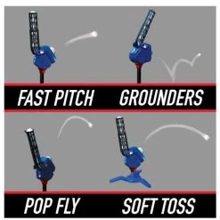 Perfect for building confidence and skills in young players. Practice training by easily setting the machine to the designated angle for practice hitting and fielding. Perfect for building confidence and skills in young players. Practice training by easily setting the machine to the designated angle for practice hitting and fielding. 1. Soft pitch 2. Fastpitch 3. Grounders4. Pop-ups