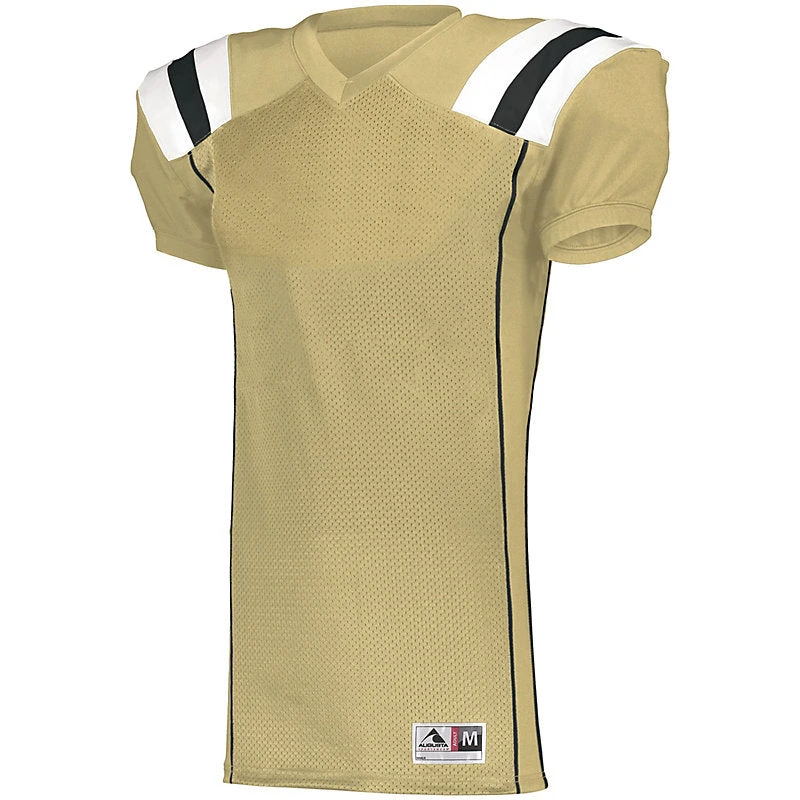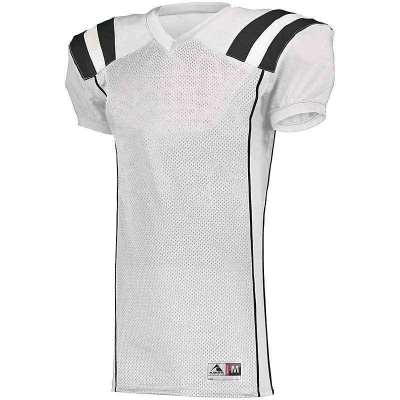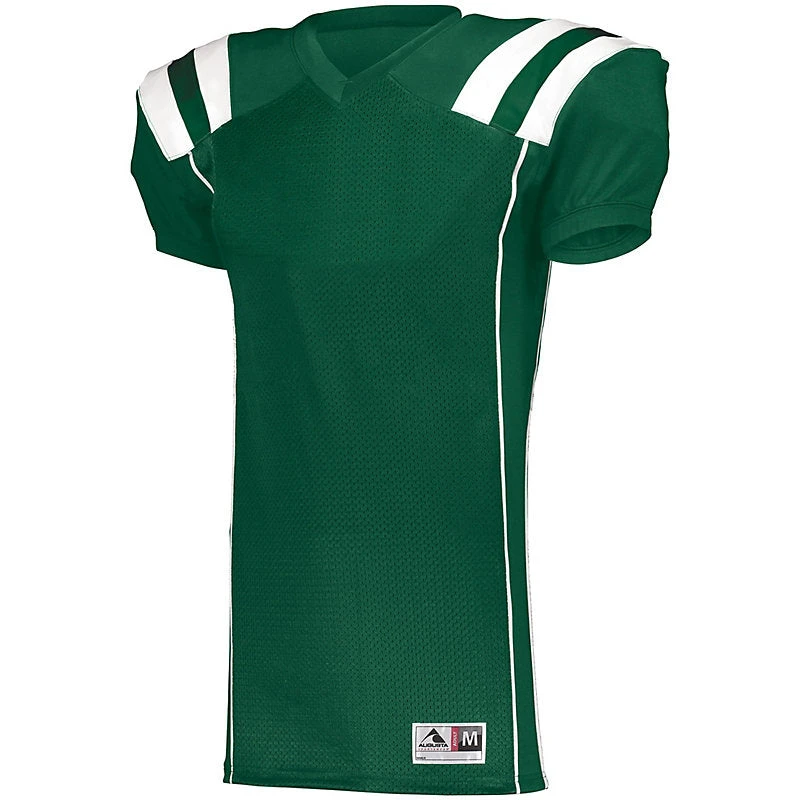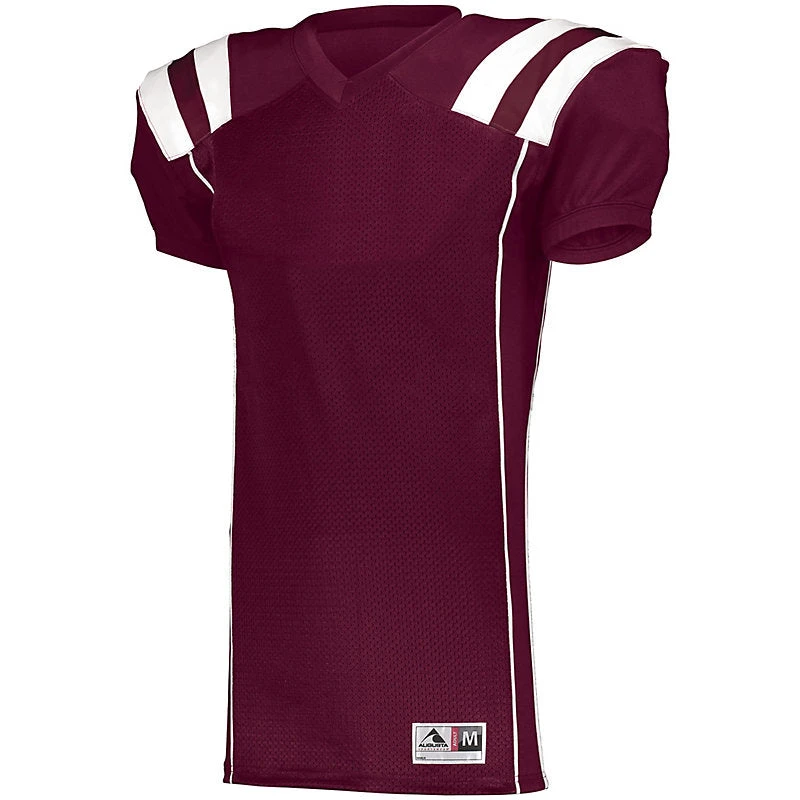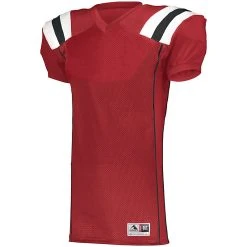 Turn Time on Printed Uniforms is 6 days after are approval send logo to [email protected] DESCRIPTION: Take your game all the way to the end zone in the Augusta Youth TForm Football Jersey. Contrast color shoulder insert stripes give this budget-friendly youth jersey a high-end look with a toughness and durability you need under pressure. This jersey is ready to go into overtime in 16 classic colors. 100% polyester heavyweight tricot mesh body 88% polyester/12% spandex 2-ply yoke, collar, sleeves, side insert, and cuffs Outside locker label Contrast color V-neck collar Contrast color shoulder inserts Back vent opening at bottom hem Collegiate cut set-in sleeves with elastic cuffs for secure fit over pads
