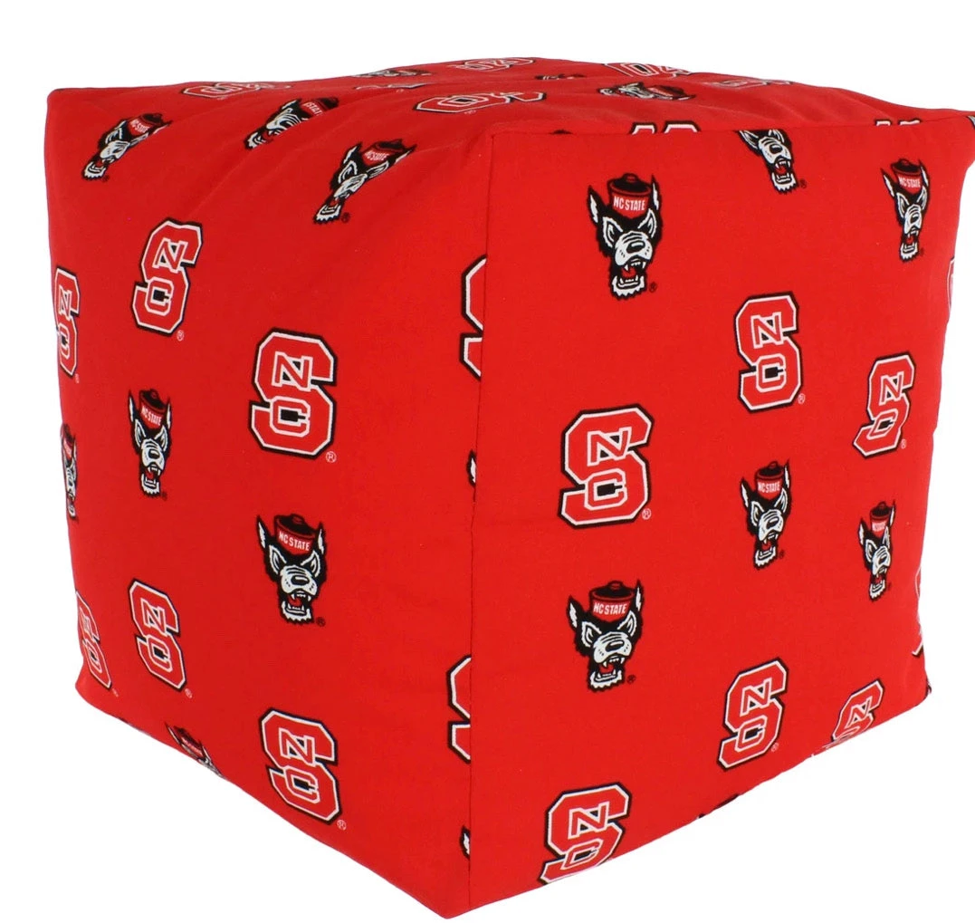 Our NCAA licensed Cube Cushion Pouf Chair Bean Bag Ottoman, pouf chair or square chair is a great addition to any patio, tailgate spot, dorm room, game room or fan cave. This cushion is made with UV treated high spun polyester, to resist stains, mildew, weather and fading in sunlight. This cushion or chair works great for any number of things: extra dorm room chair, foot rest in your patio or pool area, on the go seating while tailgating or a perfect chair in your child’s game room. Our Cube Cushion Pouf Chair Bean Bag Ottoman or square chair is filled with a 100-percent recycled polystyrene beads sourced from South Dakota and stuffed and finished right here in Nebraska. Lightly spot clean or hand wash with a mild detergent and cool water, allow to air dry. Measures 18-inches long x 18-inches wide x 18-inches high.