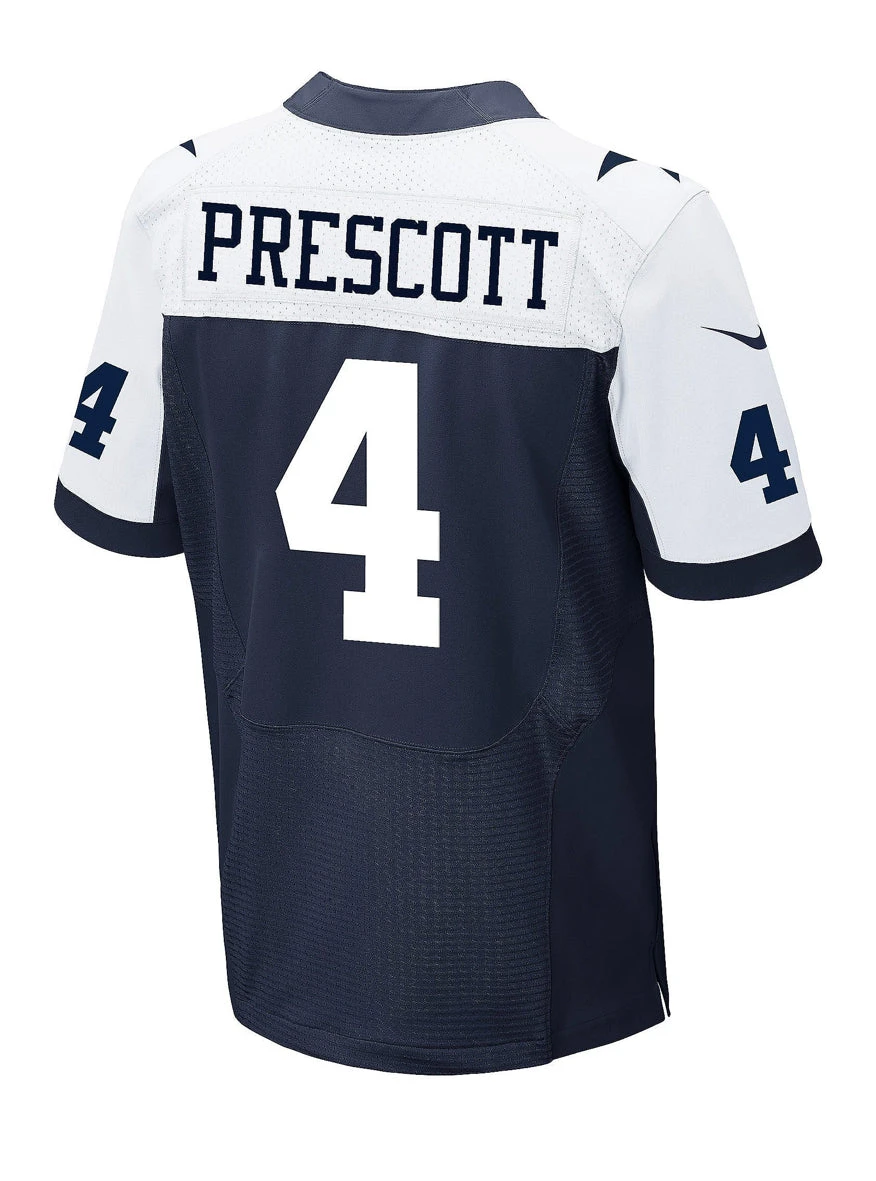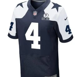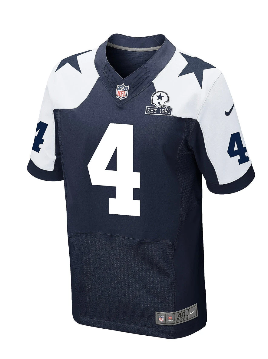 Celebrate 60 years and show off your favorite player with the Dallas Cowboys 60th Anniversary Dak Prescott #4 Nike White Game Replica Jersey. This Nike Dallas Cowboys Dak Prescott jersey is a high-quality replica jersey at a great value. The solid-body construction and silicone graphics enhance the classic Cowboys style, and the Nike Swoosh logos on the sleeves set off the entire look.