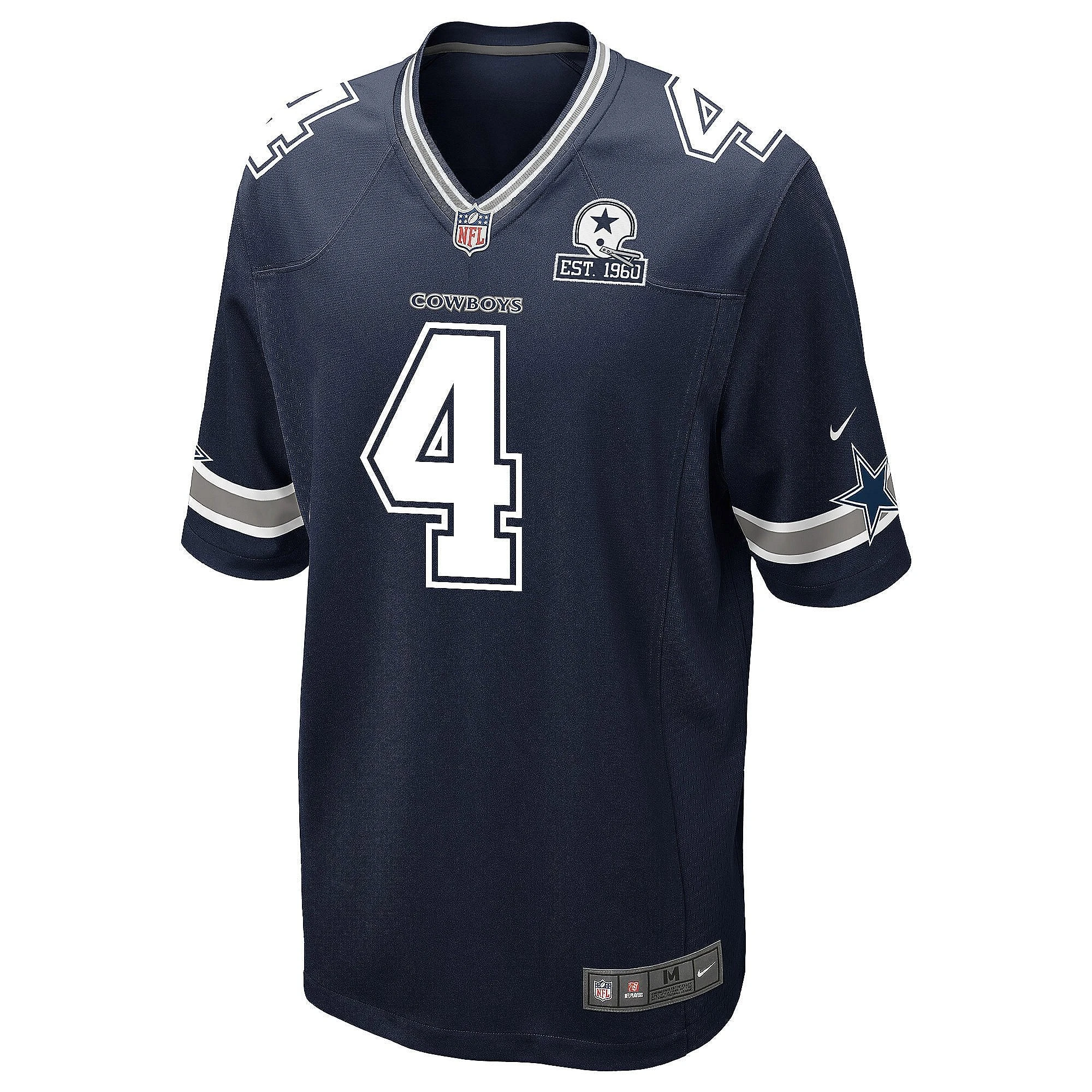 It’s the ultimate Cowboys NFL Draft 2020 souvenir – celebrate this year’s NFL Draft with the Dallas Cowboys Dak Prescott #4 Nike Navy Game Replica Jersey, and welcome the new addition to the Dallas Cowboys team. This Nike Dallas Cowboys jersey is a high quality replica jersey at a great value. The solid-body construction and silicone graphics enhance the classic Cowboys style, and the Nike Swoosh logos on the sleeves set off the entire look.