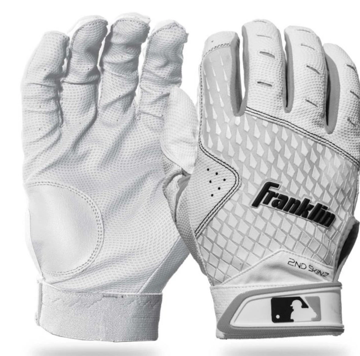 Franklin’s 2nd-Skinz Baseball Batting Gloves feature a cool backhand design and are offered in a number of color patterns to match your team’s uniforms or your individual personality. The digitally etched synthetic palm provides a superior grip on the bat for you to rip line drives into the gaps and edge your team to victory. The 2nd-Skinz design also features a leather heel patch for extra durability when making contact on the knob of the bat so you’ll remain comfortable no matter the situation at the plate.