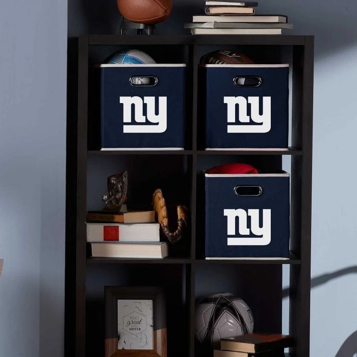Keep all of your things organized while showing your team colors with these fully collapsible storage bins! Each bin comes folded flat and quickly assembles to a 10.5″x10.5″x11″ cube! Conveniently fits into most cube shelving organizers. Great for storing toys, clothes or anything else you need to quickly stow away! Includes a reinforced chrome handle that is both stylish and functional! Available for all NFL teams!