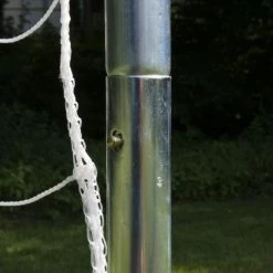 When it’s game time, this full-size soccer goal is what you”ll need for the next 90 minutes. Its tournament-grade quality begins with heavy-duty, rust-resistant steel tubing and reinforced bars that provide a sturdy frame, while the all-weather PE net withstands vigorous practice and outdoor environments.Six rust-resistant ground stakes firmly and securely anchor the goal in the ground. Precision fit locking pins allow for easy and secure assembly as well as break-down and storage.