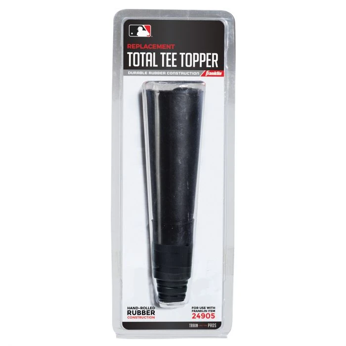 Franklin Sports replacement tee topper for our Total Tee #24905. To replace your batting tee topper, cut through or unravel external tape on your current Total Tee topper to release coiled rubber and expose internal locking mechanism. Slide out locking pin from the internal topper mechanism and discard. Then, simply line up the replacement topper opening with the top of the Total Tee upper post and snap into place! It’s that easy!