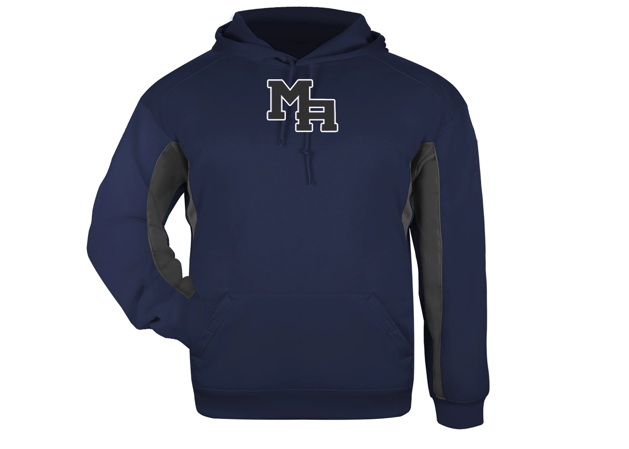 Front pouch pocket with hook and loop closures Front and back contrast inserts with piping 100% polyester moisture management fleece fabric Headset opening in pockets Embroidered Badger logo on left sleeve Poly rib cuff and waist