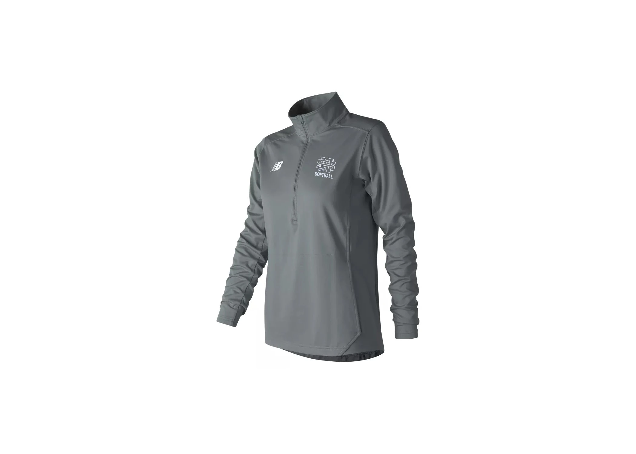 New Balance Women’s Lightweight Solid Half Zip Jacket The NB Stretch 1/2 Zip is about freedom of movement in all conditions. With a stretch, brushed-back microfleece fabric and athletic cut, this top provides excellent range of motion on and off the field. • 88% polyester, 12% spandex • Athletic fit • Brushed-back stretch performance fleece • Pouch pocket • Heat transfer NB logo