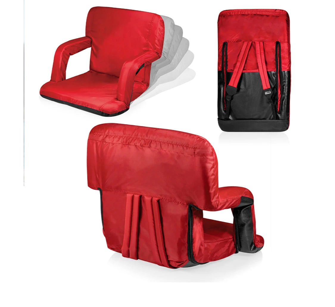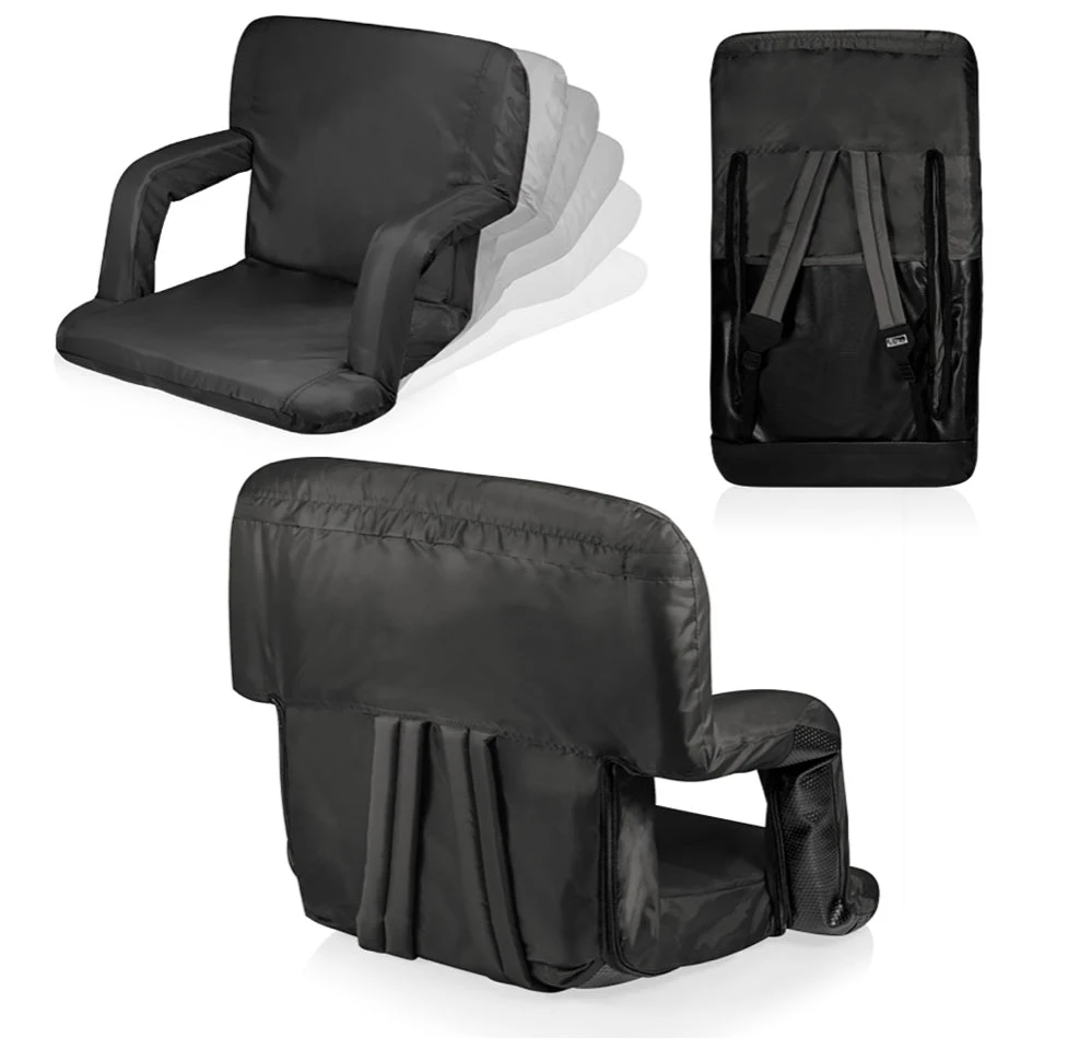 Your buns and back will thank you for easing into the high-density foam comfort of the Ventura Seat, a reclining stadium chair. Take the Ventura Stadium Seat with you, using adjustable backpack straps. Its armrests actually invert up to 20″ to add width to the seat, if needed. Explore the Ventura Seat’s six backrest positions to find the perfect groove for your aching back. Whether you’re watching your kid’s soccer game or gaming with your buddies, the Ventura Seat elevates kicking back.