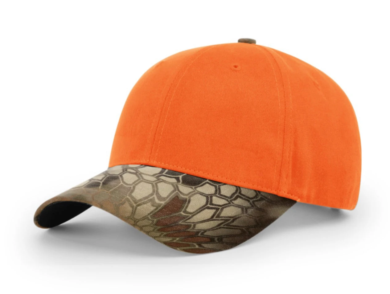 Our poly-canvas & twill, blaze crown cap with KRYPTEK and REALTREE camo patterns on the visor is sure to stand out. Adjustable hook-and-loop backstrap offers sizing versatility.