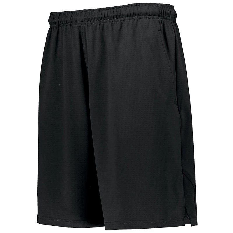 DESCRIPTION: Stay cool and dry as you sweat during your workout or while coaching on those hot days in the Russell Athletic® Coaches Short. These shorts have a team athletic cut providing a comfortable and relaxed fit and feature moisture-wicking fabric and side vents for additional breathability. 92 polyester/8% spandex mesh Dri-Power® Moisture Wicking Technology Team athletic cut for generous relaxed fit “R RUSSELL” on right hip Elastic waistband with inside drawcord Side seam pockets Back welt pocket with button closure Side vents, delivers additional ventilation & cooling 8-inch inseam