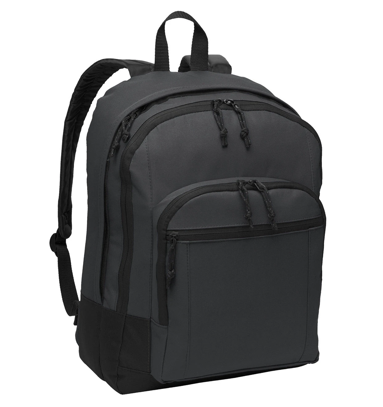 This classic backpack has a large main compartment with a laptop sleeve and a zippered front pocket with a mesh organizer.