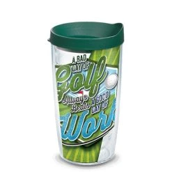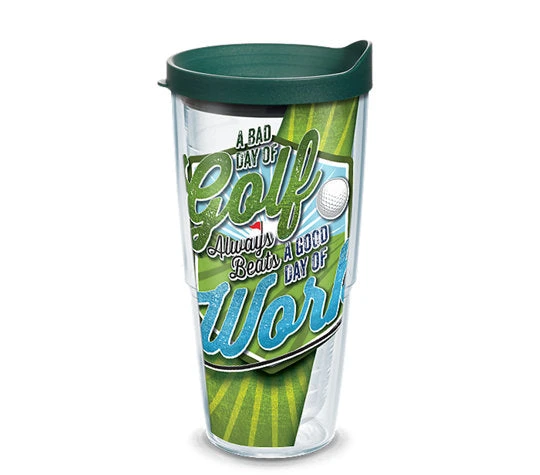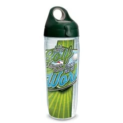 Fore … a good time, play hooky from work and take a drive – or 18 of them. Don’t forget this fun golf drinkware to keep your beverage on par the entire day. Made in America & Lifetime Guarantee This tumbler is BPA free Great for both hot & cold (Use caution with hot liquids and carbonated beverages, which aren’t recommended for water bottle) Microwave & dishwasher safe Reduces condensation Printed wrap-around design (sealed between walls of tumbler) Personalization not available Fits most cup holders (excluding mug) Pictured lid Included
